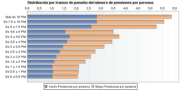 Pensionistas, percepciones de pensiones y pensiones medias por sexo y tramo de pensión