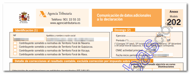 Para comunicar datos adicionales a la declaración del modelo 202 de los ejercicios 2024 y siguientes puedes utilizar el formulario en línea disponible en la página web.