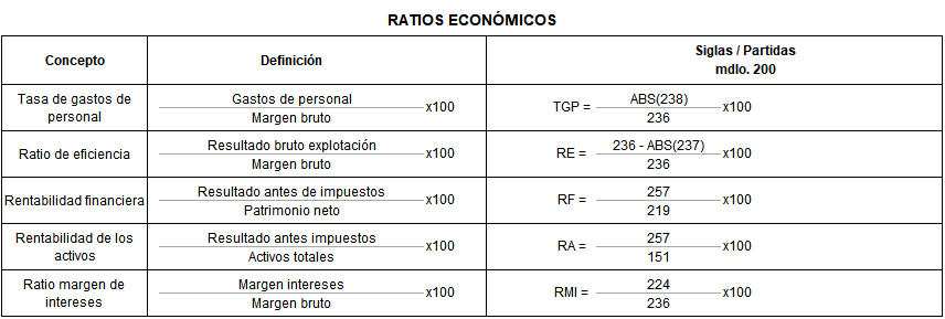 Los siguientes ratios económicos se derivan de las magnitudes agregadas contenidas en el estado contable "cuenta de pérdidas y ganancias" de las entidades de crédito, cuyas peculiaridades estructurales justifican su presentación separada: