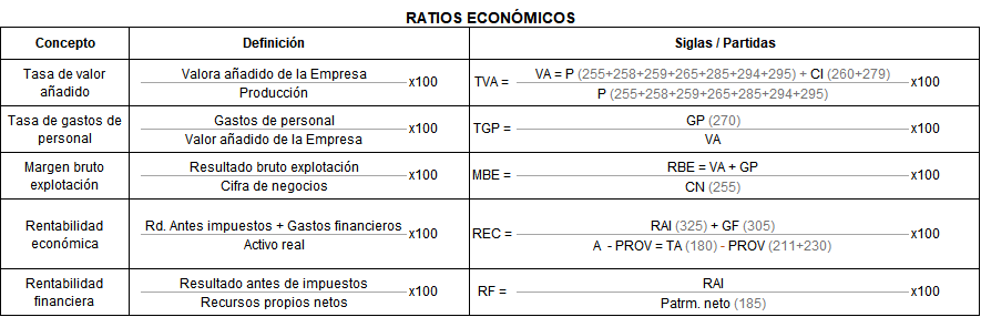 Se define como la proporción que los gastos de personal representan respecto al valor añadido y mide la participación del empleo asalariado en el reparto de la renta generada en la empresa. Su complementario es la tasa de resultado o excedente bruto de explotación, no incluida dada su facilidad de cálculo (100-TGP).